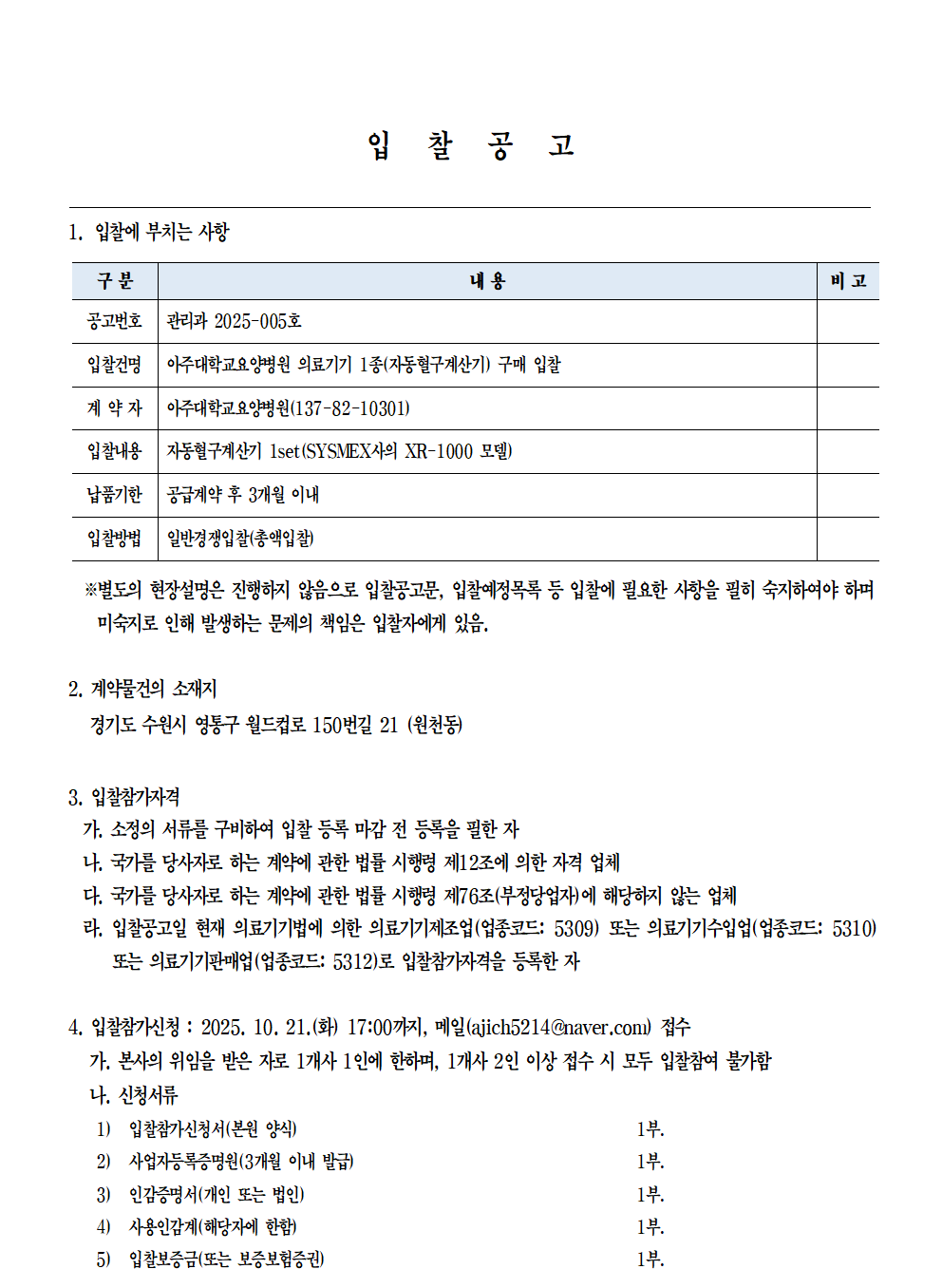 2025-10-15발주처 : 아주대학교요양병원입찰방법 : 제한경쟁입찰