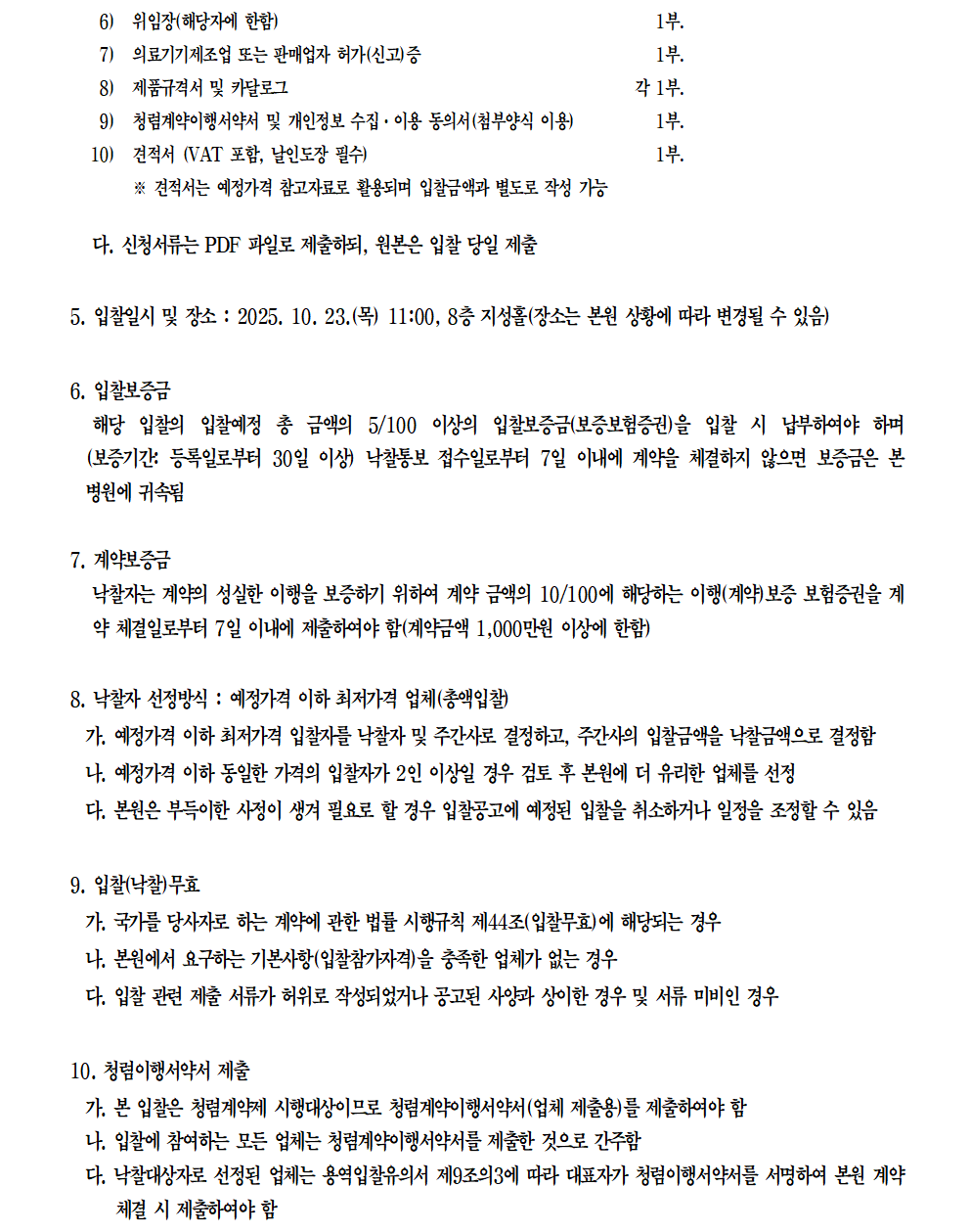 이전글아주대학교요양병원 의료소모품 및 기저귀 공급업체 선정 입찰2025-11-14